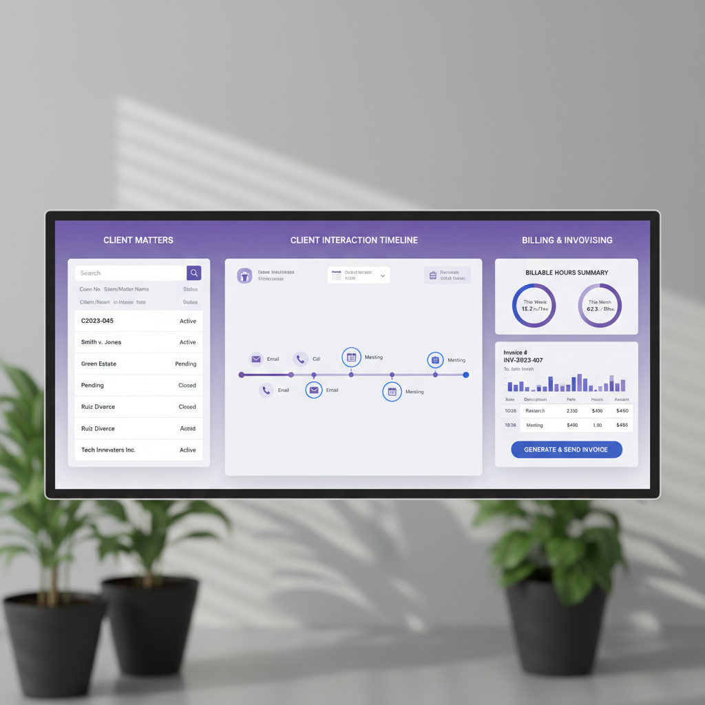 BizAI understands professional services. Not a generic CRM retrofitted with "custom fields"—a purpose-built platform for firms that bill time and manage client matters.